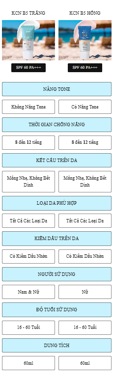 Chỉ số chống nắng: SPF 60+/PA+++ (Bảo vệ da khỏi tia UVB lên đến 500 phút và ngăn chặn khoảng 90% tia UVA).